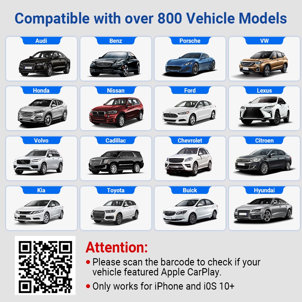The CP86 wireless CarPlay adapter is compatible with over 800 vehicle models, ensuring seamless and reliable connectivity. Installation is straightforward and hassle-free, requiring no complex setup. Just plug it into your car's USB port, and the CP86 automatically pairs with your phone, enhancing your driving experience with smart connectivity.