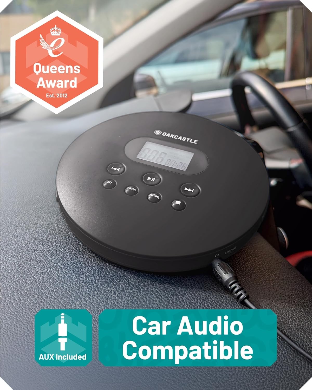 Majority Oakcastle CD Player - CD100 - Portable & USB-C Rechargeable CD Player with Bluetooth incl Free Earphones