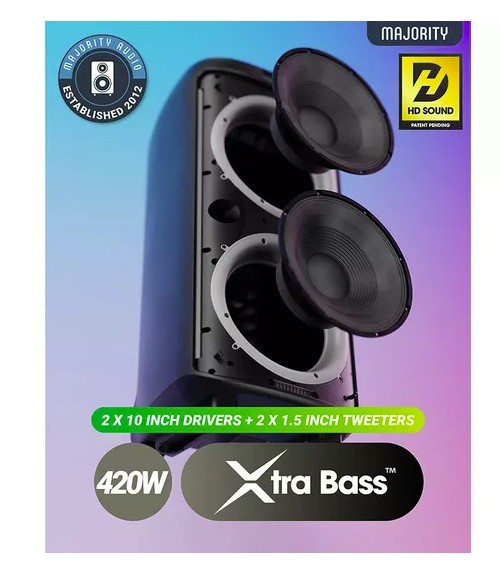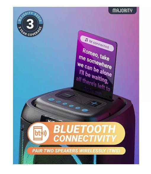 Majority Speakers Portable Karaoke - PULSE P4 - 420W Wireless Mic BT USB RGB UK