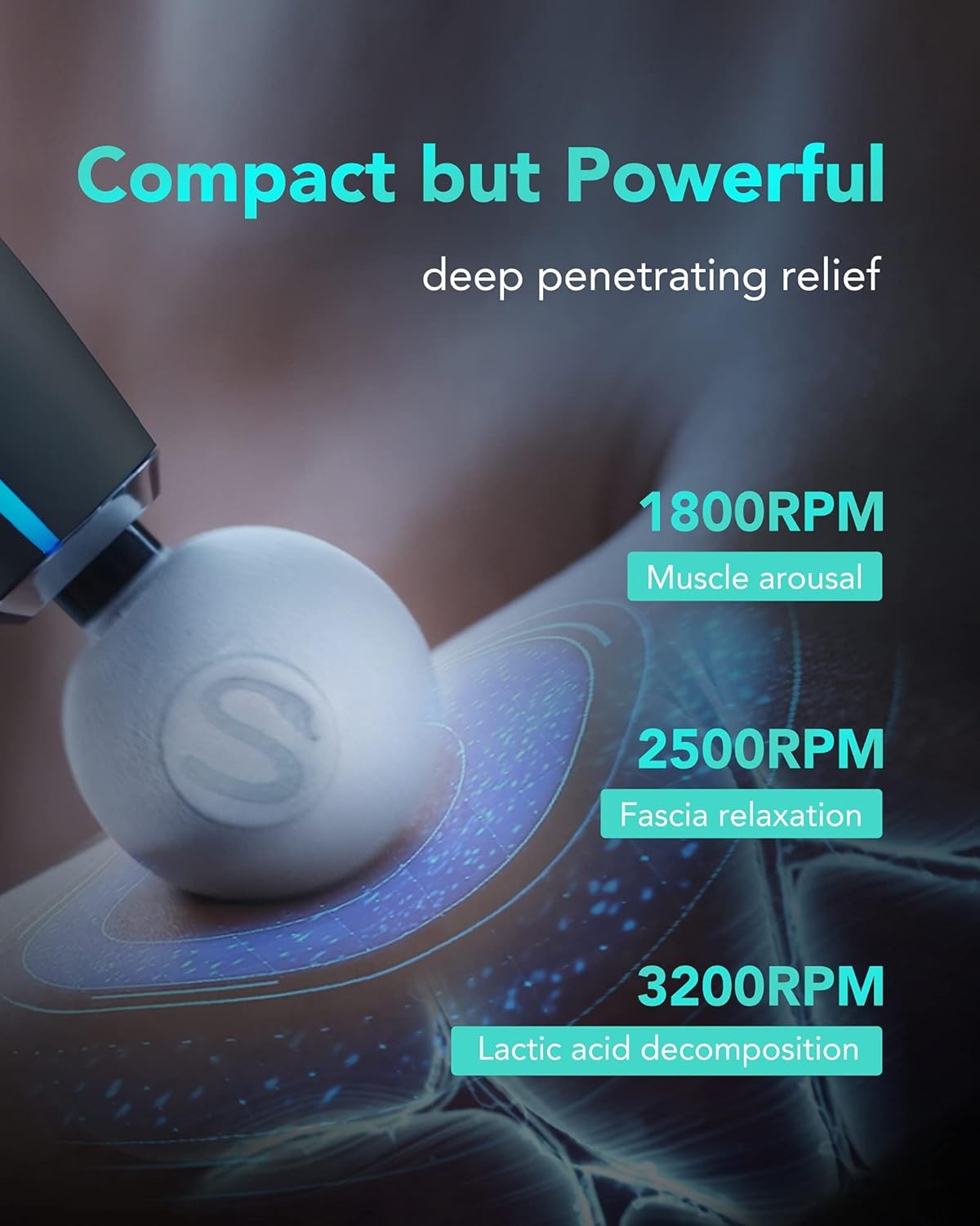 Mini but POWERFUL: The palm-sized, ergonomic design makes the handheld massage gun comfortable and easy for one-handed control.And the Heated massage gun is a go-to recovery tool, can deliver up to 3200 pulses per minute for deep penetrating relief.