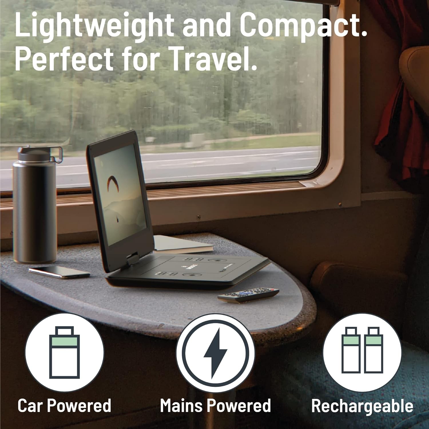 - BUILT-IN BATTERY: The DVD175 redefines car entertainment with its integrated battery, a 4,000mah battery grants up to 6 hours of playtime. Stay charged on long trips with the AC mains and car adapter. Enjoy HD movies indoors or amidst nature in your tent, car or caravan.