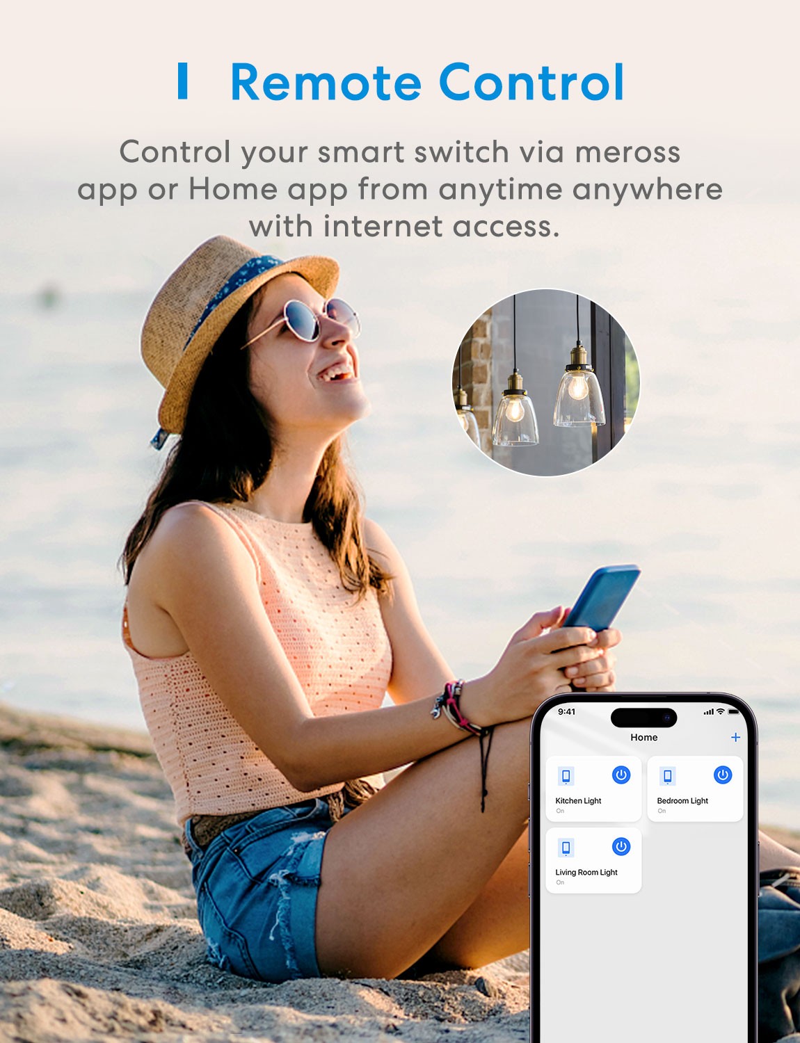 - Turn lights on/off from anywhere anytime with Meross app.