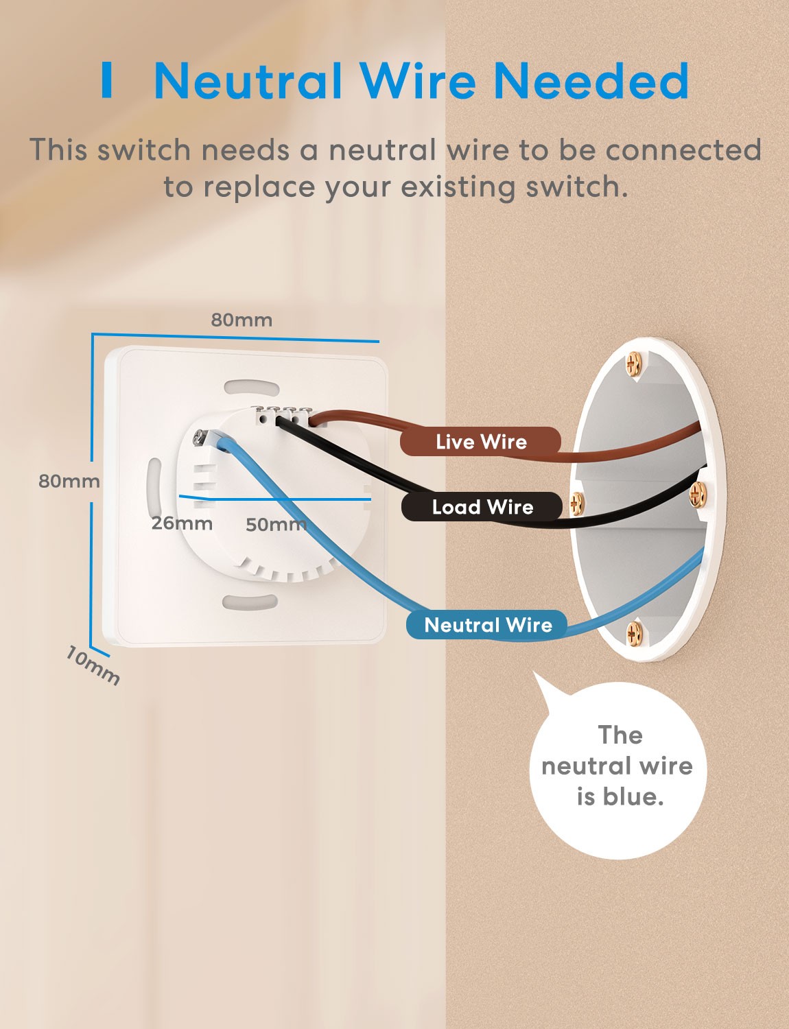 - Neutral wire (blue wire) required.