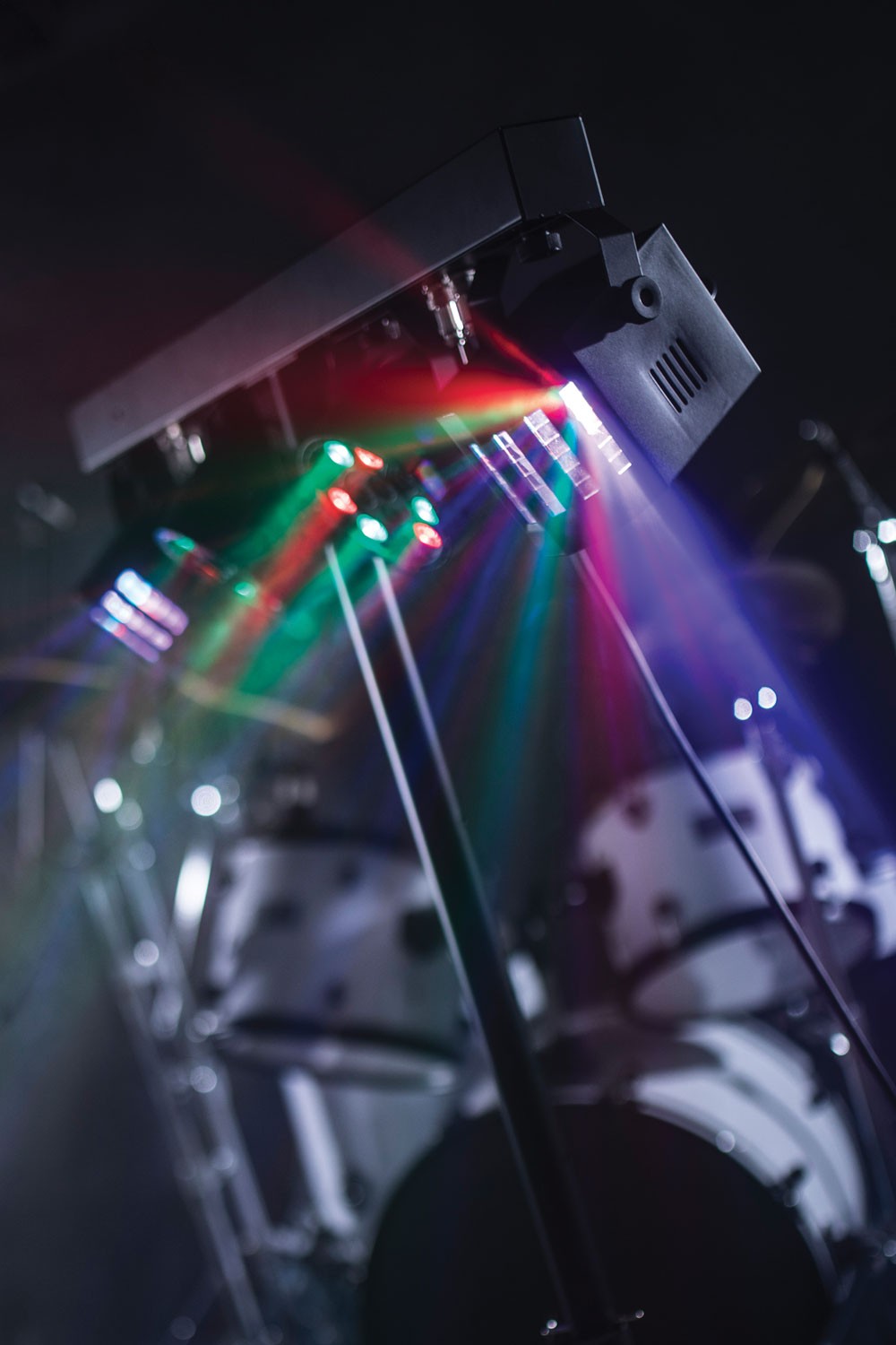 - T-bar with 2 RGBW PAR cans and 2 LED derby effects