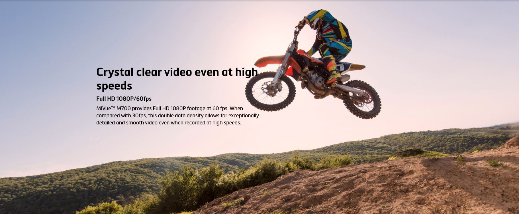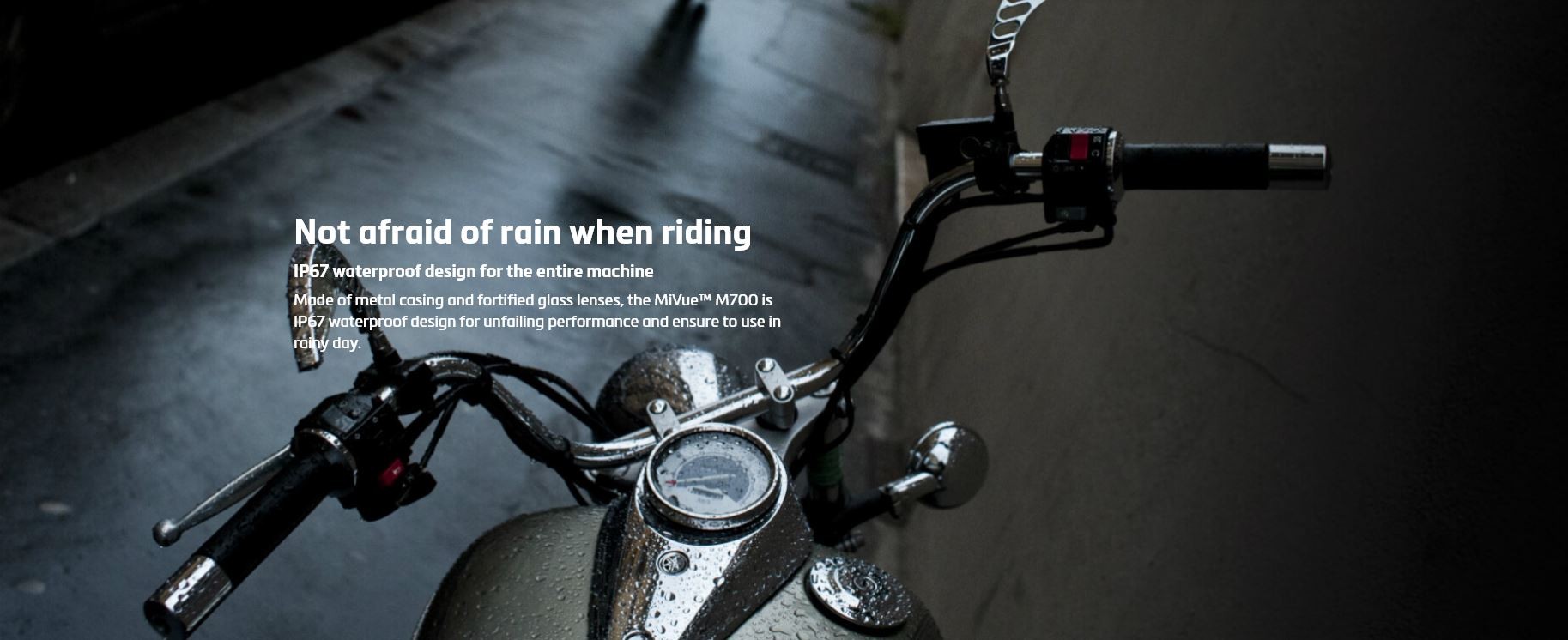 MiVue Dash Cam M700 Rider records in 2K (1440p) and 1080p@60fps, with WiFi and IP67 waterproof design.
