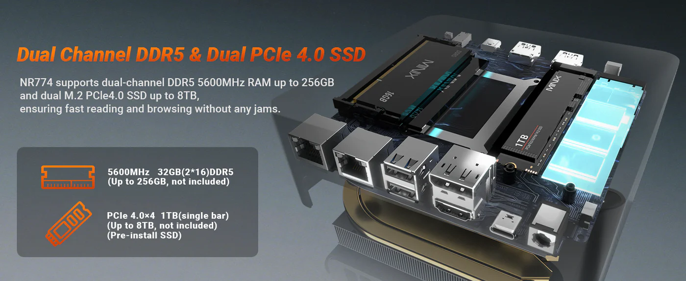 MINIX Mini PC - NR774 - Ryzen7 8745H, 32GB DDR5, 1TB SSD, 2.5GbE, HDMI DP USB-C, Win11 Pro