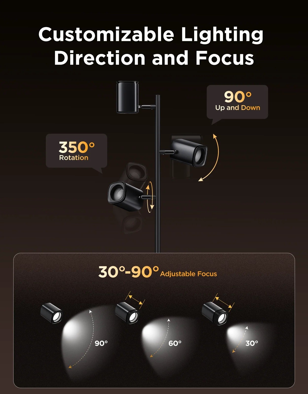 - Customizable Lighting Direction: Lamp arms rotate 350° horizontally and 90° vertically, while the lamp heads offer 30°-90° rotation for precise lighting.