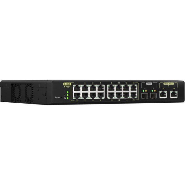The QNAP QSW-M2116P-2T2S is an L2 PoE managed switch with sixteen 30 watt 2.5GbE PoE+ ports, two 90 watt 10GbE PoE++ ports. With a total power budget of 280 watts and two 10GbE SFP+ ports, the QSW-M2116P-2T2S not only enables a high-speed and high-power PoE network infrastructure for Wi-Fi 6 access points and routers, but also offers backbone network uplink functions. QSS, the QNAP Switch System with a user-friendly web interface, helps IT administrators efficiently control Layer-2 and PoE networks, including wireless APs, IP cameras and digital signage, core switches and servers. The QSW-M2116P-2T2S provides SMEs with a cost-optimized and centrally managed LAN deployment solution.