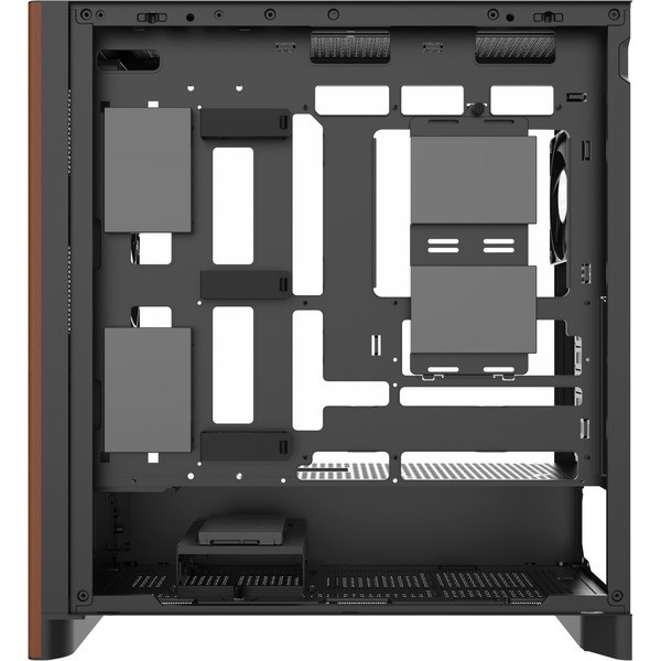 The Thermaltake S370 WS combines minimalist industrial design with natural wood side panels for a warm, organic contrast. The mesh front panel optimizes airflow while wooden trims add stylish accents. It supports hidden-connector motherboards like ASUS BTF, MSI PROJECT ZERO, and GIGABYTE PROJECT STEALTH for clean cable management.