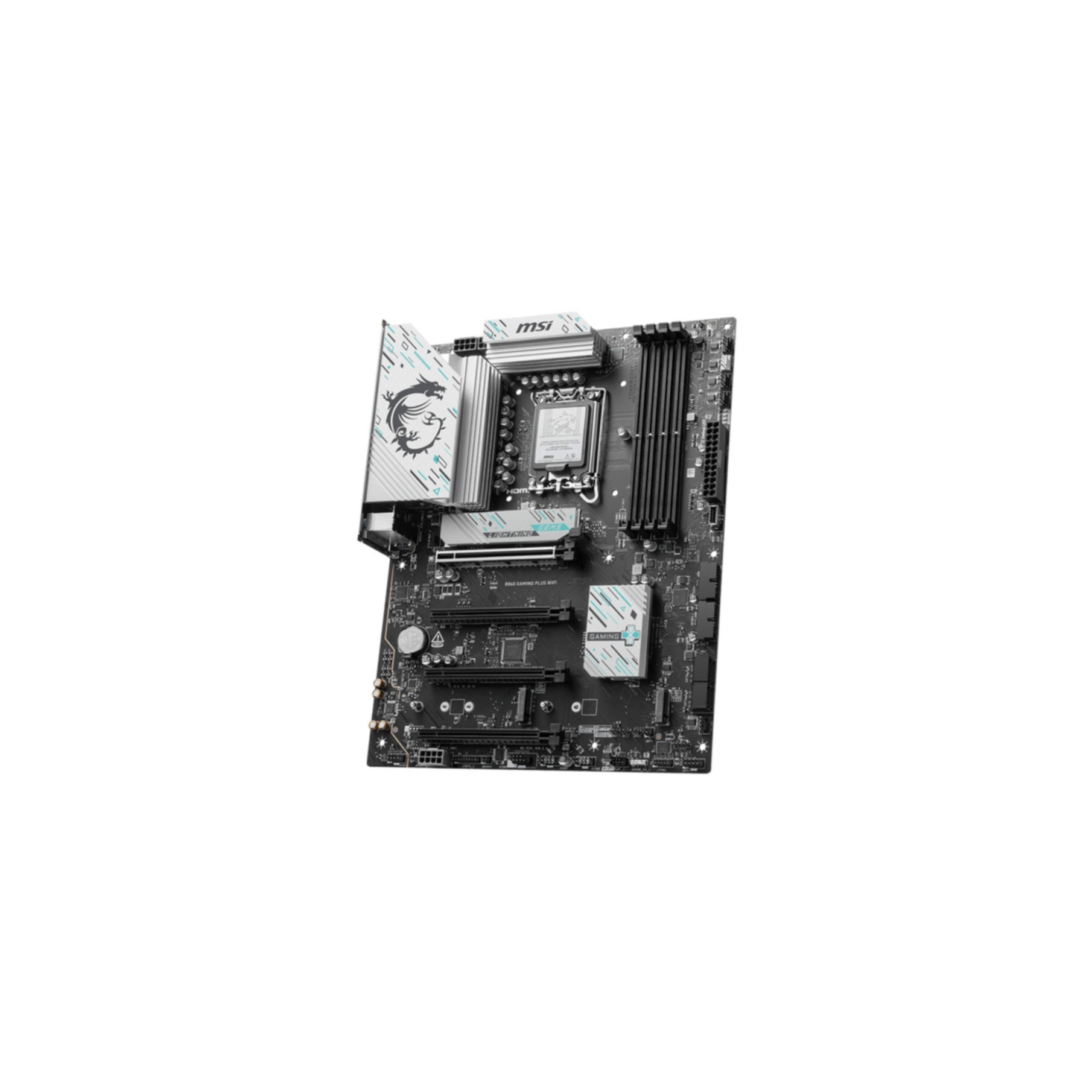 MSI B860 GAMING PLUS WIFI. Processor manufacturer: Intel. Processor socket: LGA 1851 (Socket V1). Compatible processor series: Intel Core Ultra (Series 2). Supported memory types: DDR5-SDRAM. Maximum internal memory: 256 GB. Memory slots type: DIMM. Supported storage drive interfaces: M.2. Micro SATA III. Supported storage drive types: HDD & SSD. RAID levels: 0. 1. 5. 10. Ethernet interface type: 5 Gigabit Ethernet. Top Wi-Fi standard: Wi-Fi 7 (802.11be). Wi-Fi standards: 802.11a. 802.11b. 802.11g. Wi-Fi 4 (802.11n). Wi-Fi 5 (802.11ac). Wi-Fi 6 (802.11ax). Wi-Fi 6E.... Component for: PC. Motherboard form factor: ATX. Motherboard chipset family: AMD
