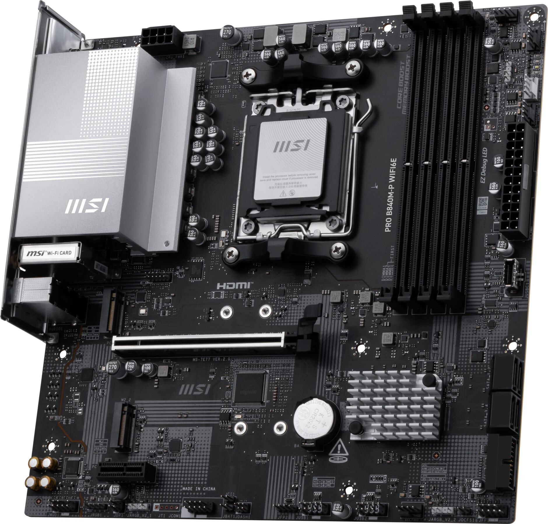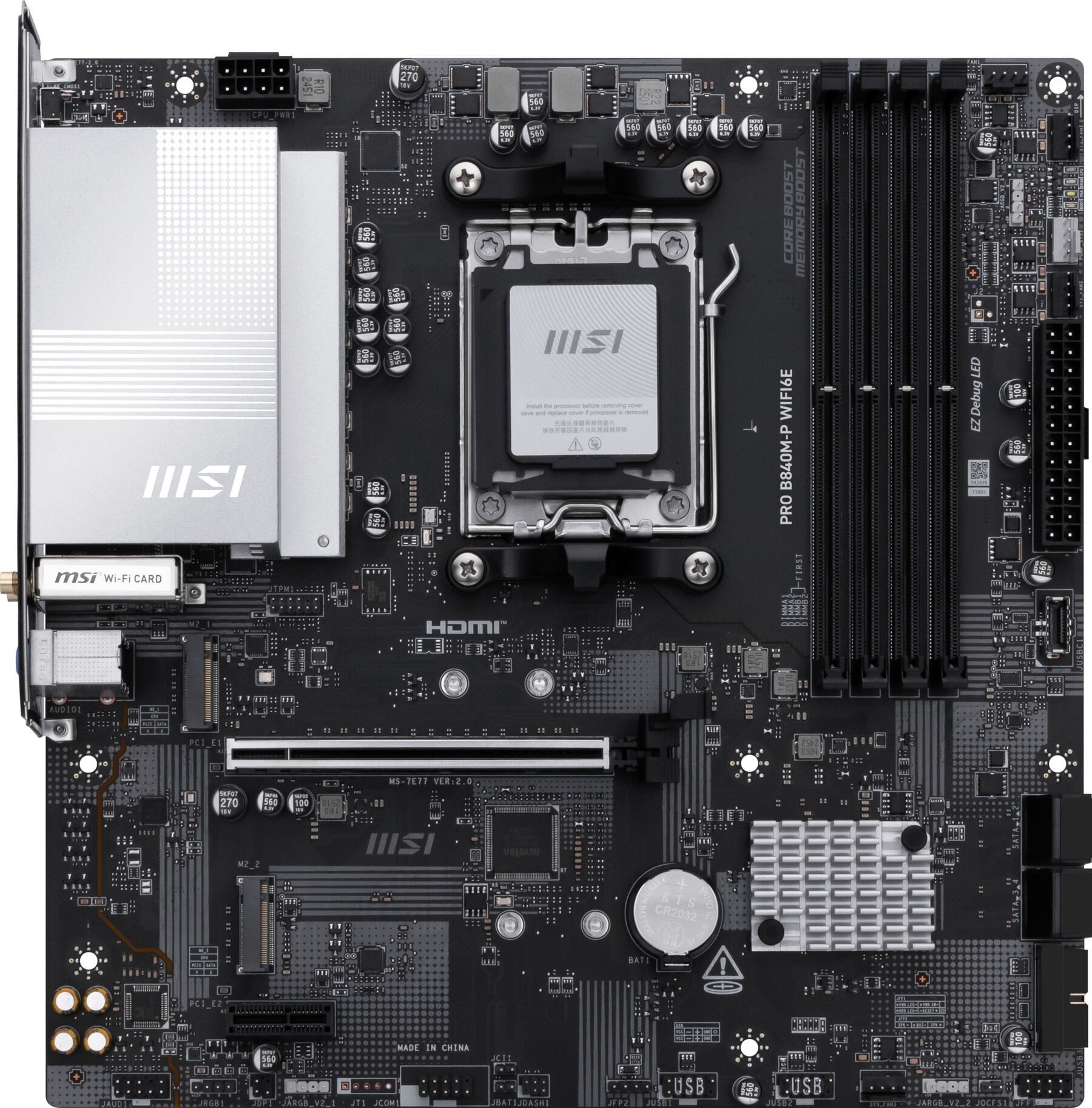 MSI B840M P Pro WIFI6E - AM5 Micro-ATX - DDR5 256GB (4x32GB), PCIe 4.0, WiFi 6E, 2.5Gb LAN, RGB, Black