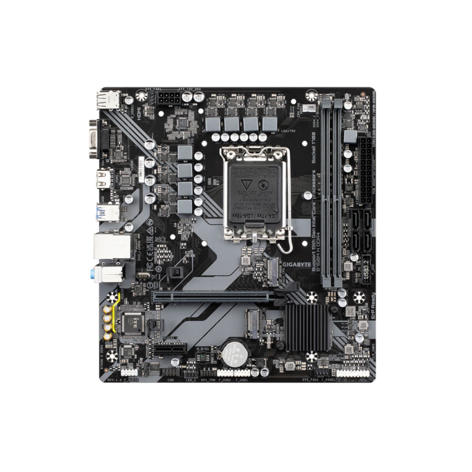 GIGABYTE B760M H DDR4 Motherboard - Supports Intel Core 14th Gen CPUs. 6+1+1 Phases Digital VRM. up to 3200MHz DDR4 (OC). 2xPCIe 4.0 M.2. GbE LAN. USB 3.2 Gen1. Processor manufacturer: Intel. Processor socket: LGA 1700. Compatible processor series: Intel® Celeron®. Intel® Pentium® Gold. Supported memory types: DDR4-SDRAM. Maximum internal memory: 64 GB. Memory slots type: DIMM. Supported storage drive interfaces: M.2. SATA III. RAID levels: 0. 1. 5. 10. Ethernet interface type: Gigabit Ethernet. Component for: PC. Motherboard form factor: micro ATX. Motherboard chipset family: Intel