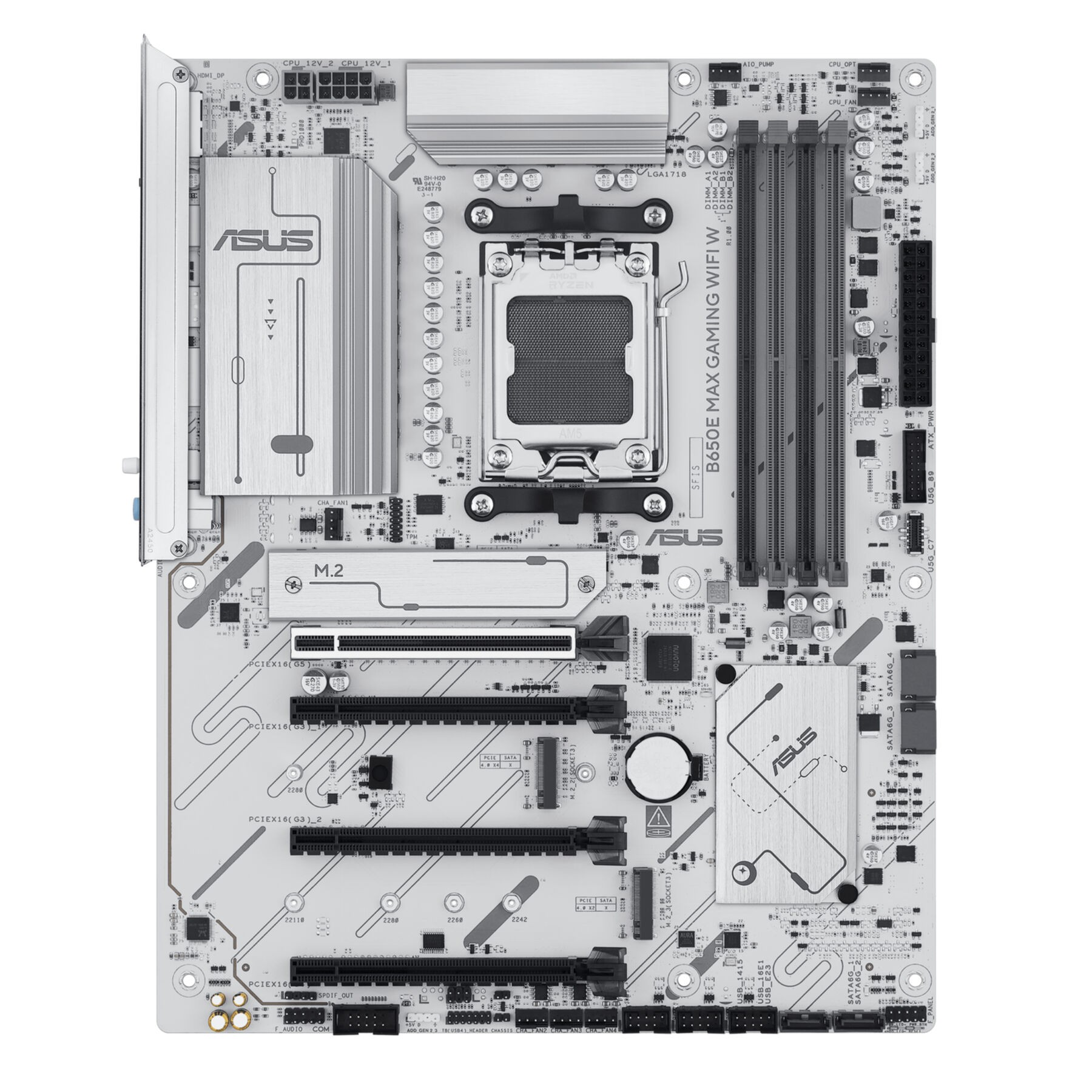 ASUS B650E series motherboards are expertly engineered to unleash the full potential of AMD Ryzen 9000 & 8000 & 7000 Series processors. Boasting a robust power design, comprehensive cooling solutions and intelligent tuning options, B650E MAX GAMING WIFI W provides users and PC DIY builders with a range of performance optimizations via intuitive software and firmware features. This platform delivers the power and connectivity that advanced AI PC applications demand.