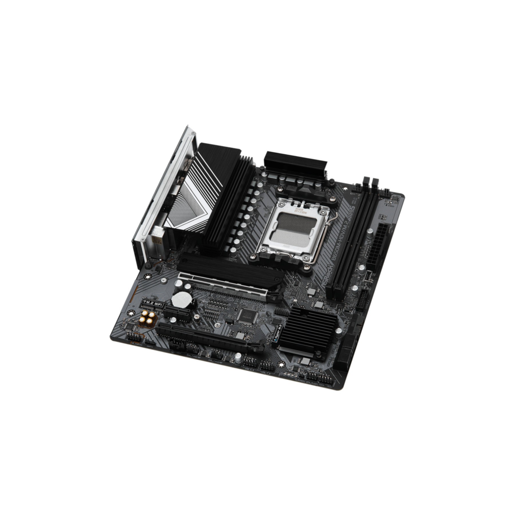 Micro-ATX AM5 motherboard with AMD B650 chipset, DDR5 support up to 64GB (2 DIMM), 1x M.2, 4x SATA III, PCIe 4.0 x16, HDMI + DP, 2.5Gb Ethernet.