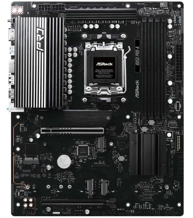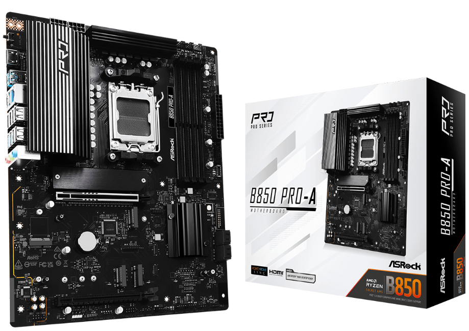 ASRock B850 Pro-A - AM5 ATX Motherboard - DDR5, 4x M.2, 256GB, PCIe 5.0, 2.5Gb LAN, HDMI 2.1 (Black)