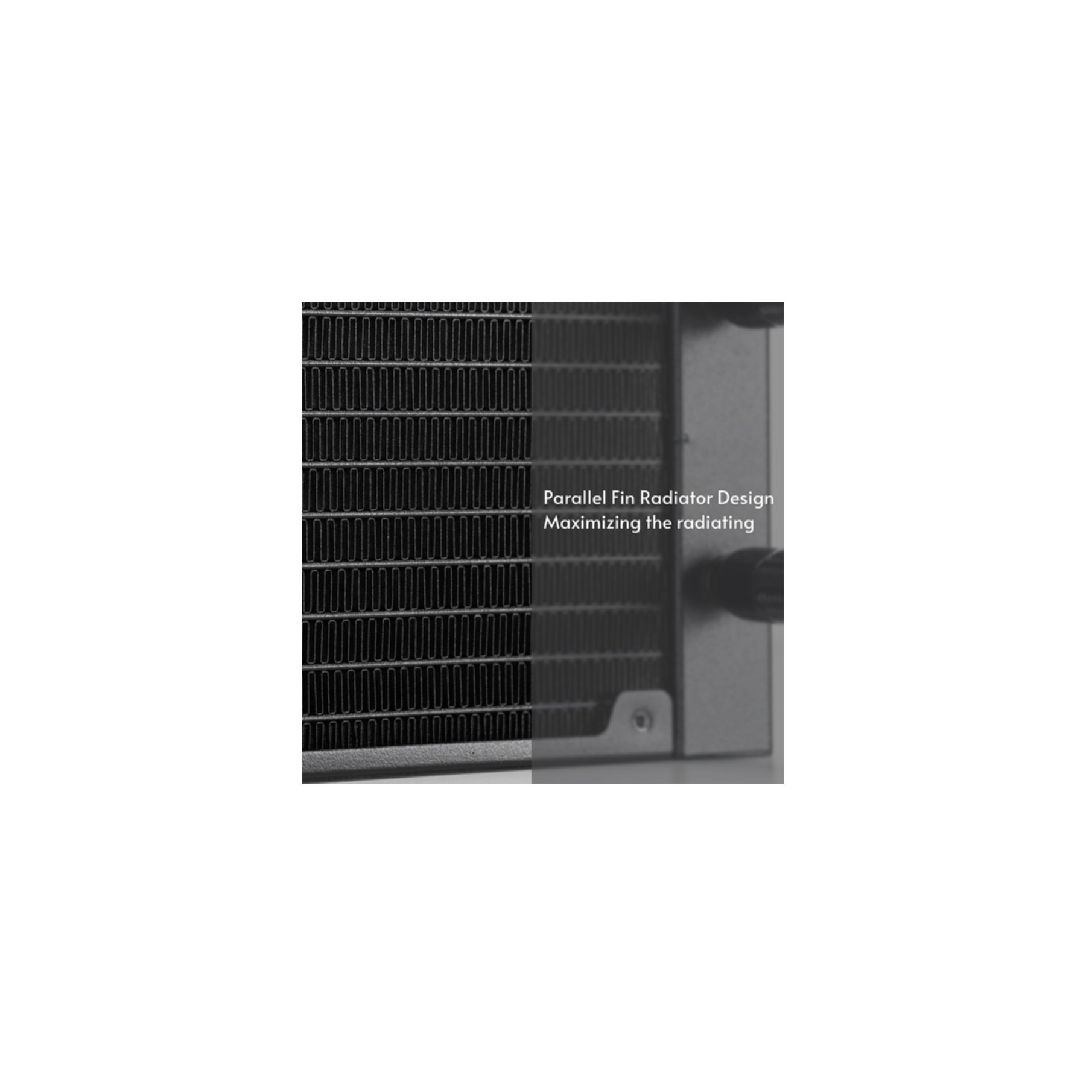 360mm AIO CPU cooler with 3x 120mm ARGB PWM fans (up to 2200 RPM), infinity-mirror ARGB pump, braided tubing and snap-on interlocking fans for clean builds.