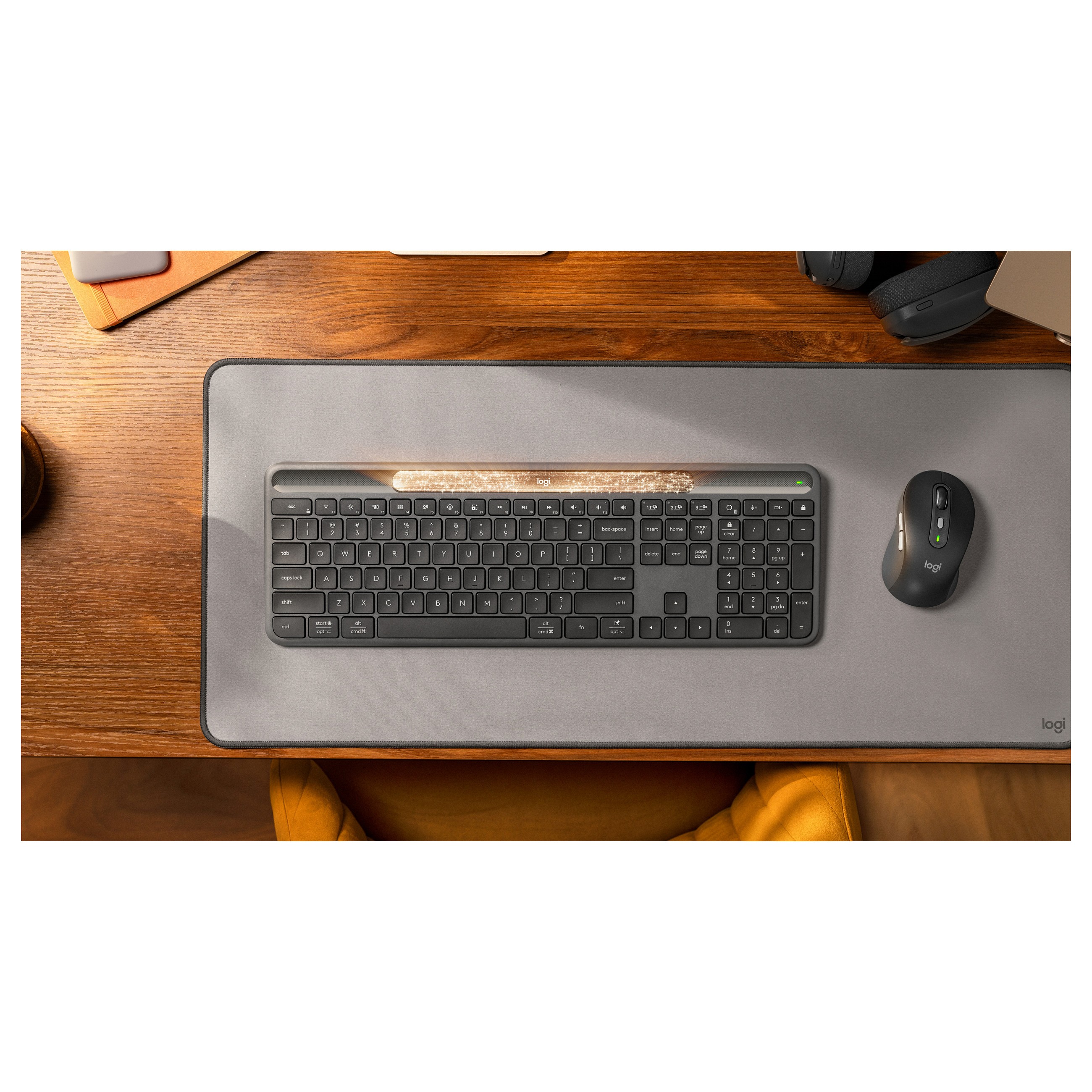 The Logitech Signature Slim Solar+ K980 is a premium wireless keyboard designed for productivity. Featuring an ultra-slim profile and innovative solar charging, it harnesses ambient light from any source—sunlight, office lamps, or fluorescents—to keep its integrated battery powered indefinitely. No USB charging or battery replacements required; it lasts up to 4 months in complete darkness on a full charge.