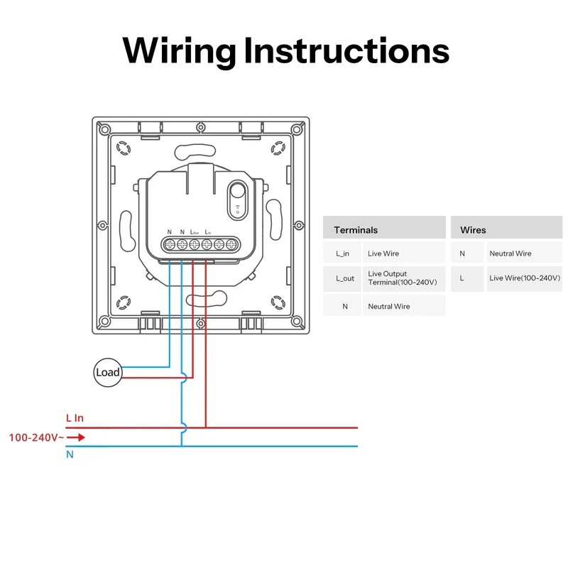- Rating : 100-240V~ 50/60Hz 10A Max Resistive load μ