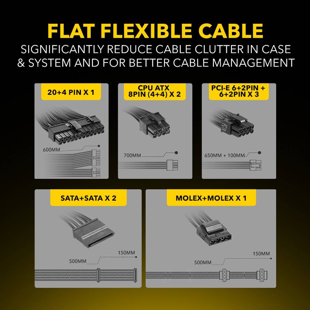 - Fully modular cables for clean builds