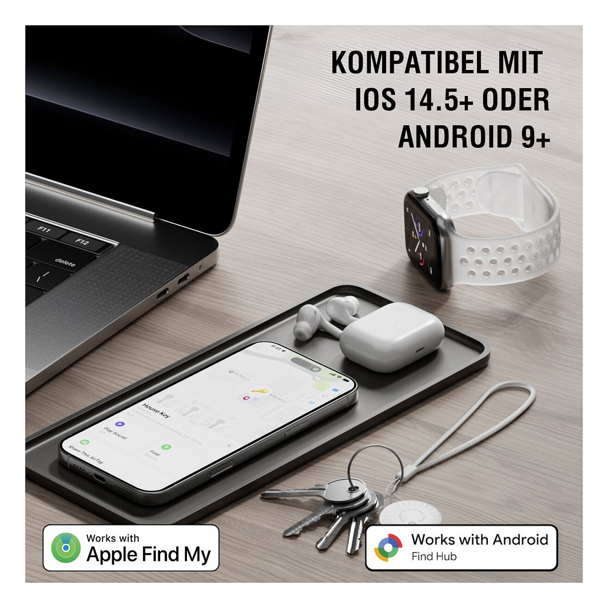 The 4smarts SkyTag Duos 4-Pack is an affordable alternative to Apple AirTags, offering reliable item tracking through the Apple Find My network. Each tracker features Bluetooth 5.3 connectivity with a 50-meter range, allowing you to locate your keys, wallet, luggage, and other valuables with ease. The integrated 100dB speaker helps you quickly find misplaced items, even in noisy environments or from another room.
