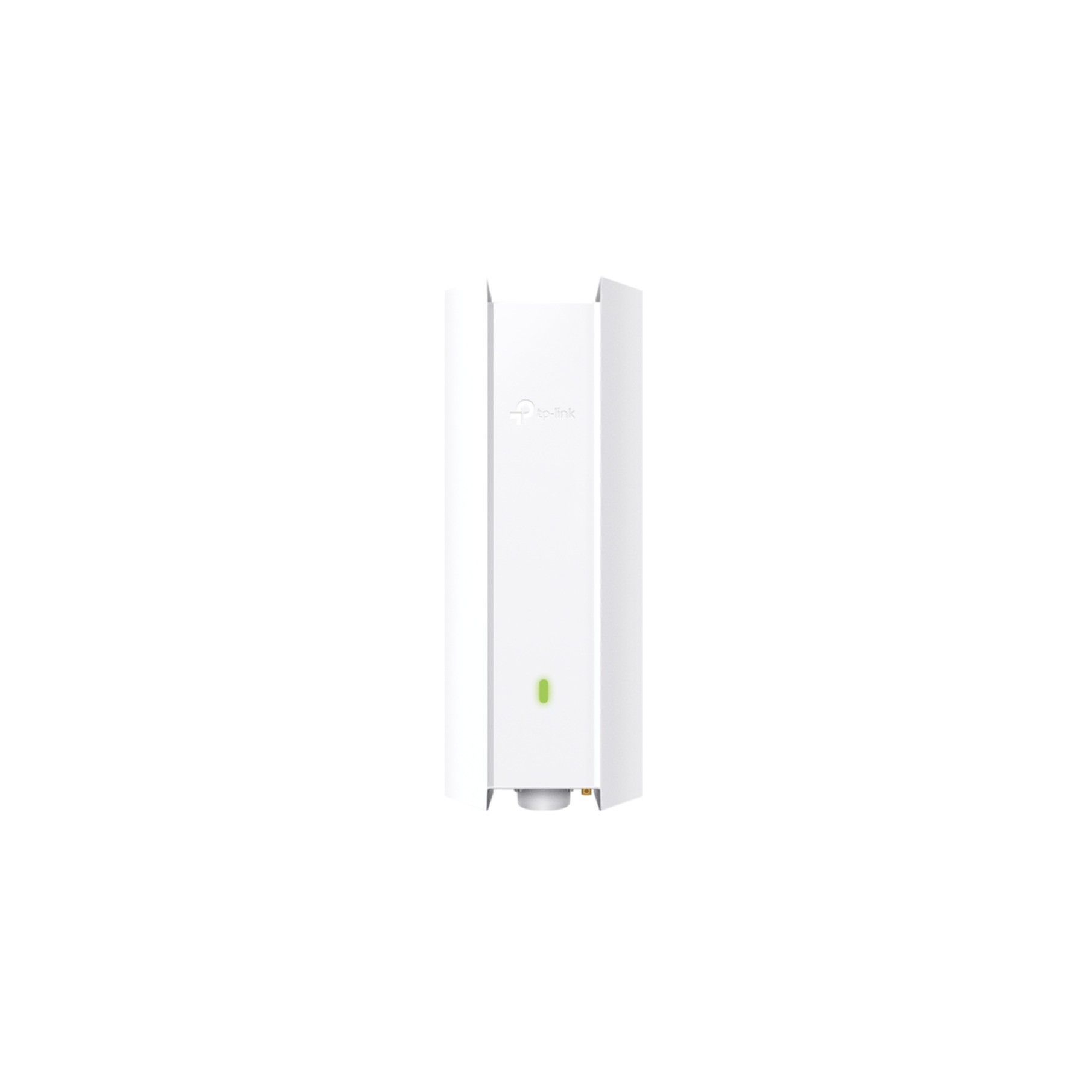 Outdoor Wi‑Fi 6 access point up to 1.8 Gbps, IP67 weatherproof, smart dual‑polarized antennas, Omada Mesh and cloud management, PoE powered for high-density outdoor coverage.