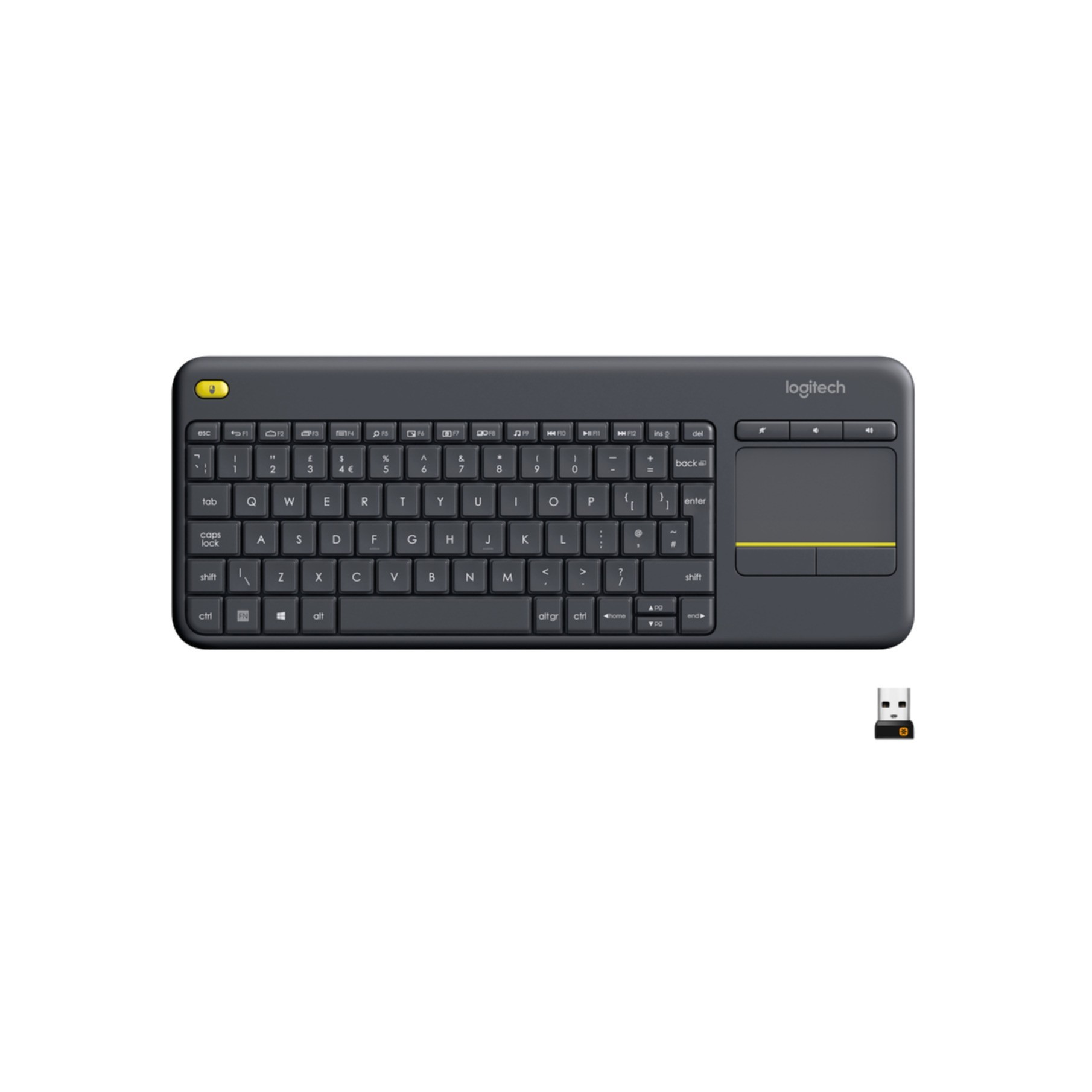 Logitech Wireless Touch Keyboard K400 Plus. Keyboard form factor: Mini. Keyboard style: Straight. Connectivity technology: Wireless. Device interface: RF Wireless. Keyboard layout: QWERTY. Recommended usage: Universal. Product colour: Black