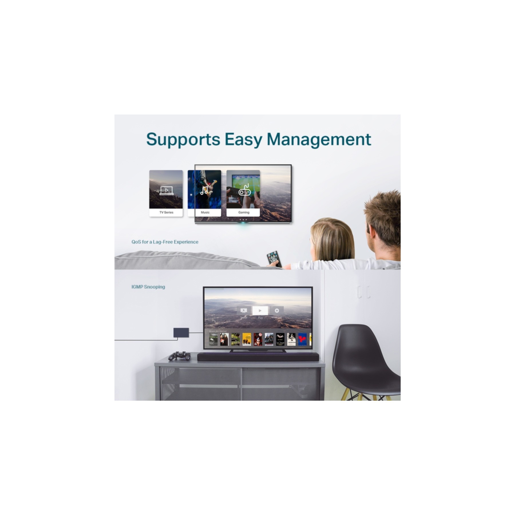 TP-LINK’s Gigabit Easy Smart switch, TL-SG108E offers network monitoring for users to observe traffic behavior. With Port Mirroring, Loop Prevention and Cable Diagnostics features, TL-SG108E can identify and even locate connection problems on your business network. Moreover, administrators can designate the priority of the traffic based on Port Priority and 802.1P Priority, to ensure that voice and video are always clear, smooth and lag-free. Additionally, to improve security and network performance, TL-SG108E supports MTU VLAN, port-based VLAN and 802.1Q-based VLAN functions. TL-SG108E is an upgrade from the plug-and-play Managed Switch, delivering great value while empowering your network and similarly delivering great value to the end user.