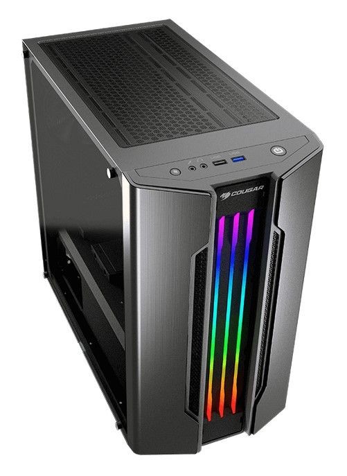 The system is equipped with 32GB of DDR4 RAM (2x16GB configuration) and a 1TB PCIe 4.0 NVMe SSD for fast boot times and application loading. The RX 7700 XT provides strong 1440p gaming capabilities with modern ray-tracing support. The build is housed in a Cougar Iron grey case with RGB lighting and runs Windows 11 Pro, offering professional-grade features alongside gaming performance. As a refurbished unit, this PC represents excellent value for budget-conscious gamers and content creators.