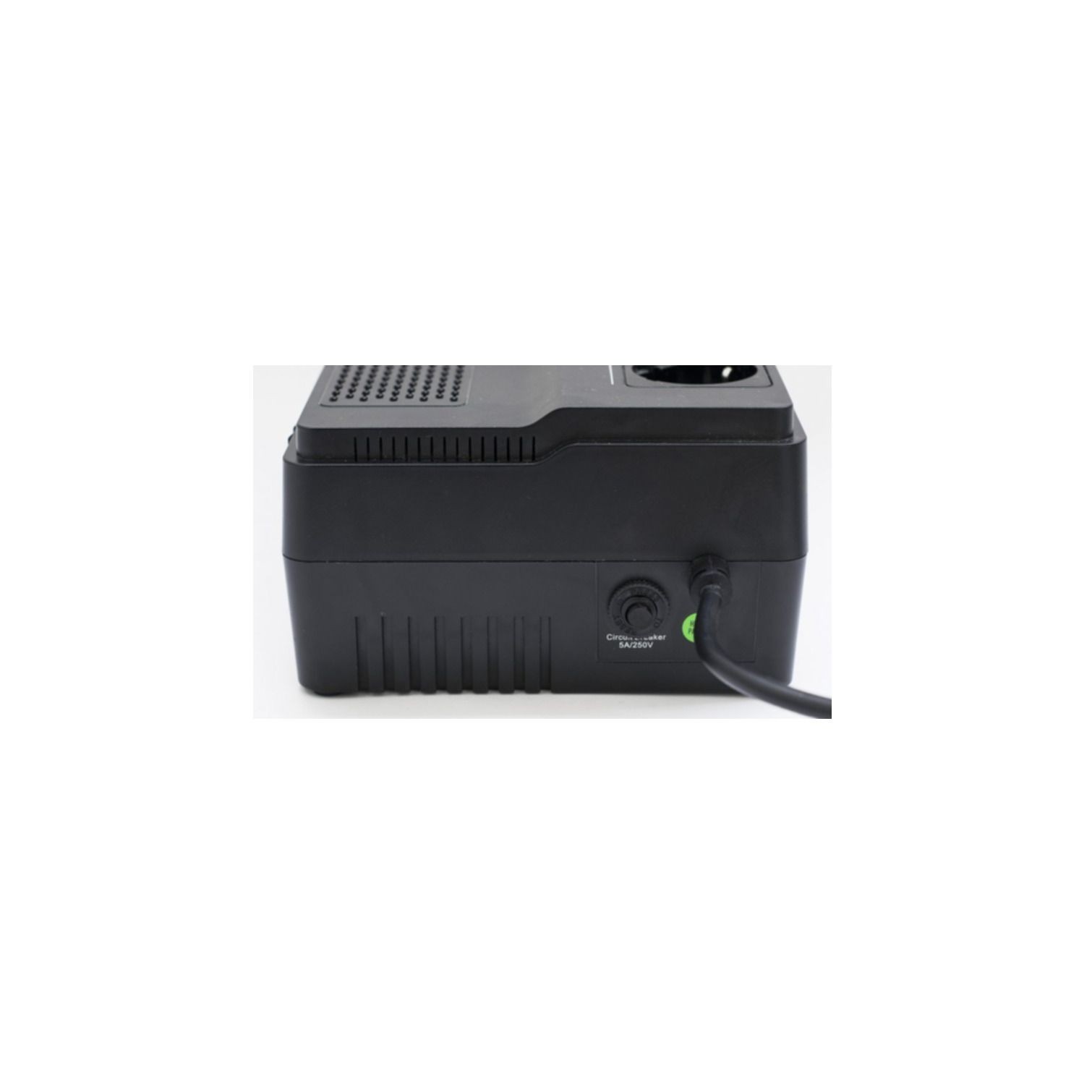 800VA (0.8kVA) Line-Interactive UPS, 450W output, AVR, 4 Schuko outlets, 7Ah VRLA battery, 6ms transfer time, 8h recharge, compact black design.