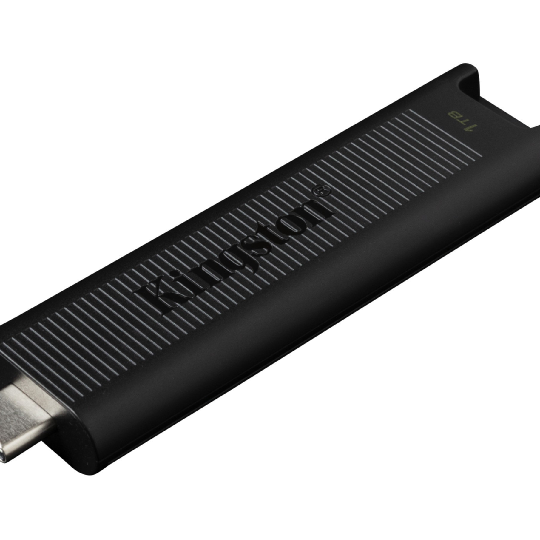1TB Kingston DataTraveler MAX USB 3.2 Gen 2 flash drive — up to 1000MB/s read, 900MB/s write. Portable ridged casing protects connector. Weight ~12 g.