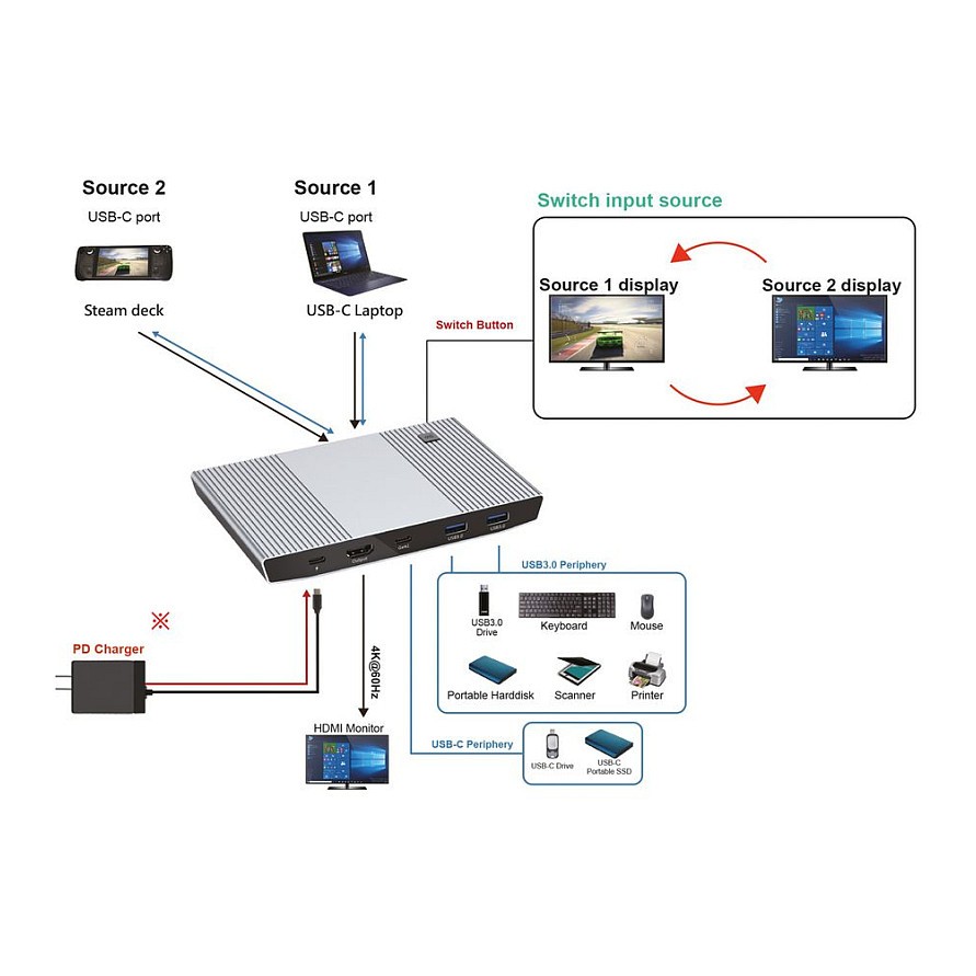 ROLINE 14.01.3427. Tastatur Porttyp: USB. Maus-Porttyp: USB. Video Porttyp: HDMI. HD-Typ: 4K Ultra HD. Maximale Auflösung: 3840 x 2160 Pixel. Produktfarbe: Schwarz. Gehäusematerial: Metall. USB-Stromversorgung bis zu: 100 W. Breite: 161 mm. Tiefe: 100 mm. Höhe: 20 mm