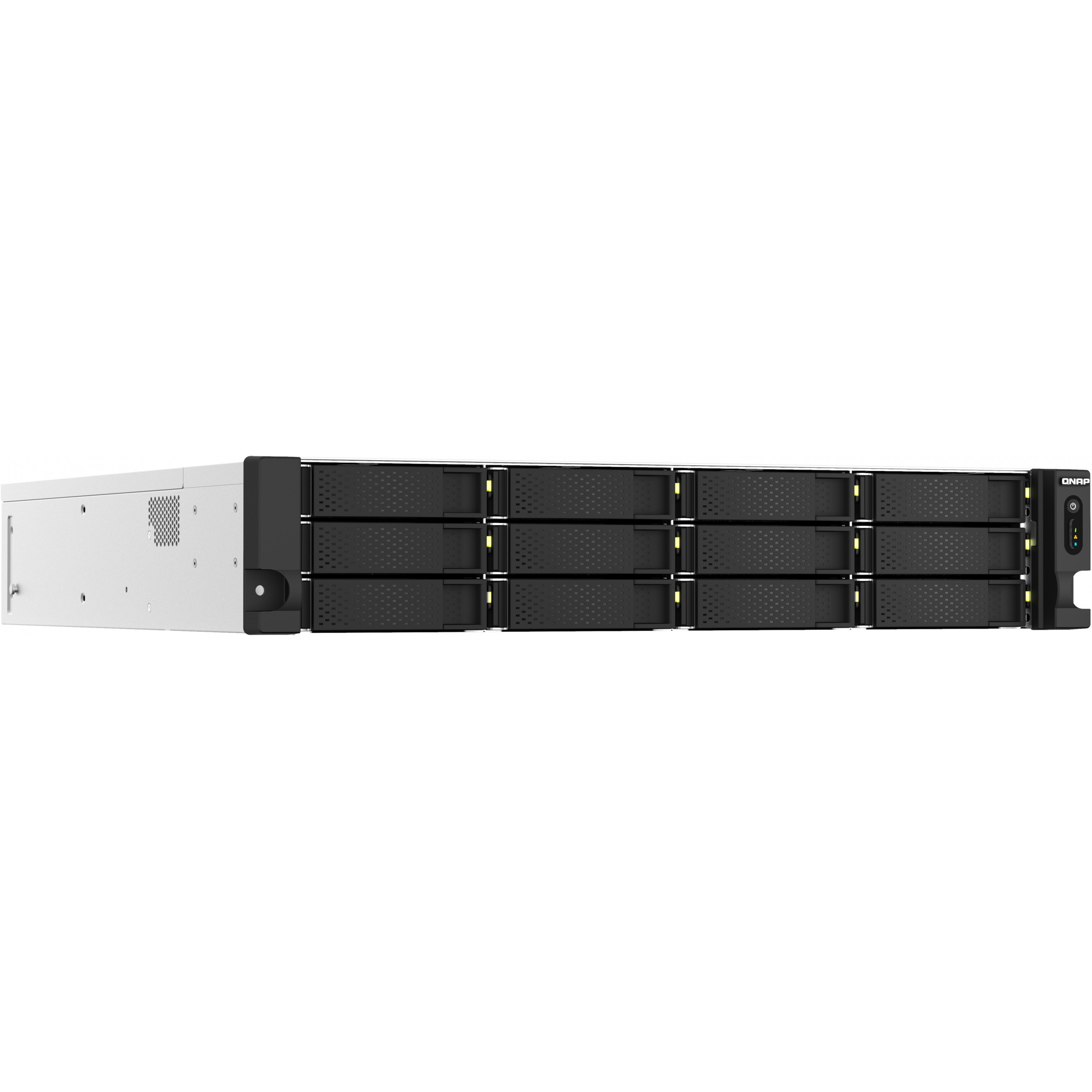 Enterprise 2U rack NAS with Intel Xeon E-2336 (6C/12T, 2.9–4.8GHz), 32GB ECC DDR4 (2x16GB), 18 hot‑swappable bays, QuTS hero, RAID support, HDD/SSD compatible.