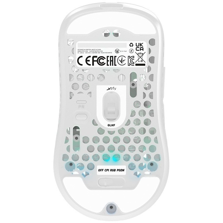 CHERRY XTRFY M42 RGB. Form factor: Ambidextrous. Movement detection technology: Optical. Device interface: RF Wireless + USB Type-C. Movement resolution: 19000 DPI. Buttons type: Pressed buttons. Scroll type: Wheel. Acceleration (max): 50 G. Illumination colour: Multi. Power source: Batteries/Cable. Product colour: White