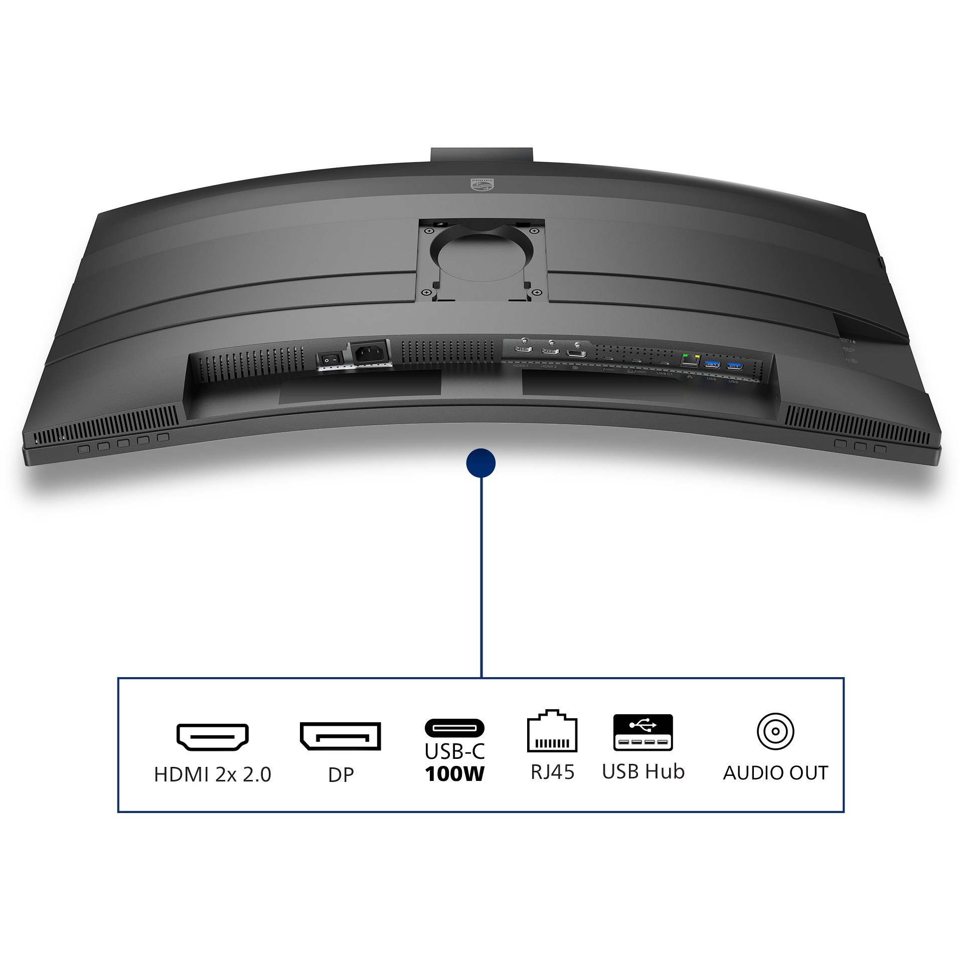 Philips 6000 Series 34B2U6603CH curved 34" VA monitor, 3440x1440 UWQHD 21:9, 120Hz, 4ms, USB-C (DP Alt Mode), HDMI, DisplayPort, built-in speakers, height-adjustable, grey.