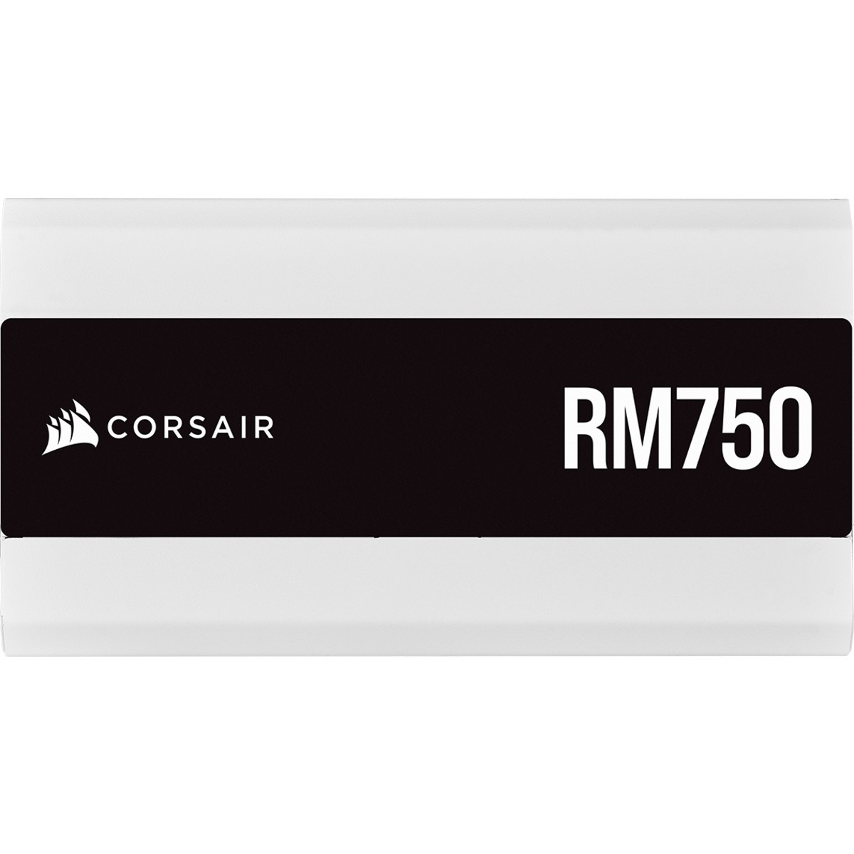 Corsair RM750 (RPS0119) 750W ATX power supply, 80 PLUS Gold efficiency, 100–240V 47–63Hz input, 140mm fan, white finish, multiple SATA/PCIe/Molex connectors.